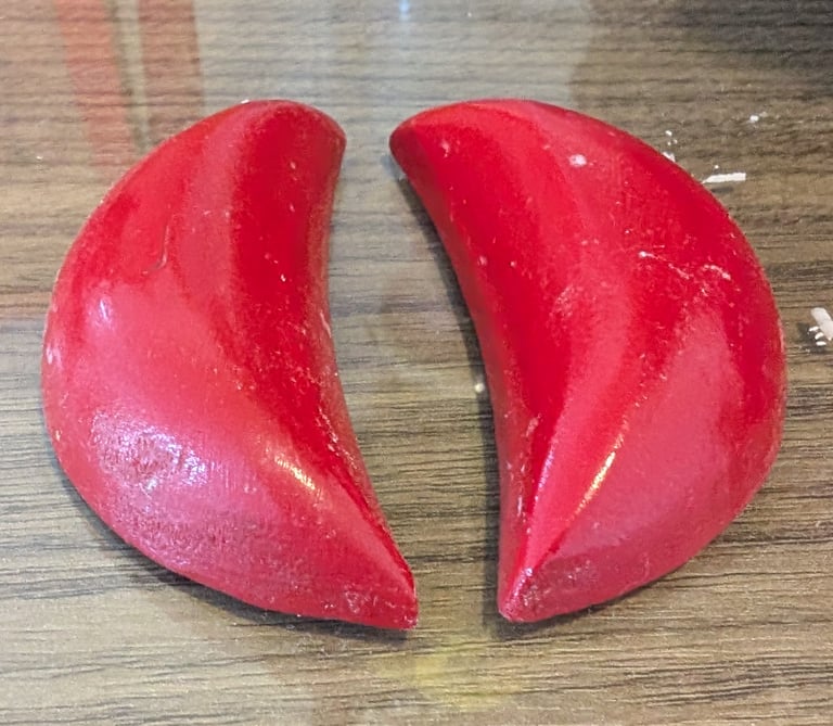 A) Moon blocks or Poe (筊杯 in Chinese) - small red wooden blocks shape like moon are used in pairs and thrown to seek divine guidance in the form of a yes or no answer. A consecutive throw of 3 Sheng Poe (see below)throw mean Ok to proceed while any other combinations means no go.
