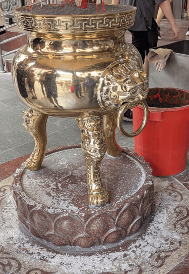 The Temple has a giant urn for the incense sticks at the entrance. No incense can be brought inside the Main Hall to prevent soot from staining the ceiling and to prevent unnecessary fire incident within the temple.